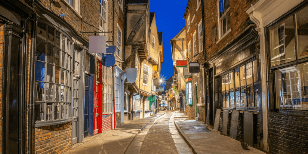 The most famous street in York, explore the winding alley and check out the many unique shops in this wonderfully preserved medieval period street. The street is narrow with overarching timber framed buildings that almost touch in places.